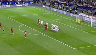 第34分钟,C罗主罚任意球稍稍高出。